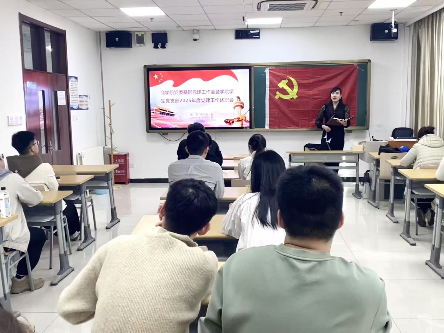近日,商学院党委围绕“第一议题”制度的工作要求,深入学习习近平总书记关于党的建设的重要思想,强化理论武装和基层党建工作质效、加强基层党组织战斗堡垒作用,商学院党委在良乡校区召开学院基层党建工作会暨学生党支部书记年度述职会。会议通过传达精神、工作述职、部署要求三个环节,提高学生支部委员思想认识并明确本年度基层党建工作方向,切实推进商学院学生党建工作走深走实。学院党委副书记贾潇,分团委书记陈雪,专职辅导员吕世亮,学生党支部书记及全体支部委员参加本次会议。