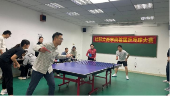 本次比赛不仅丰富了校园文化生活,也进一步促进了师生之间的互动与情谊。直拍、横拍、扣杀、旋转球、弧线球……各种技法层出不穷,对阵双方你来我往,比分交替上升。平日里严谨治学、默默奉献的老师们和勤奋求学的学子们,在赛场上成为了相互切磋、彼此鼓励的伙伴。