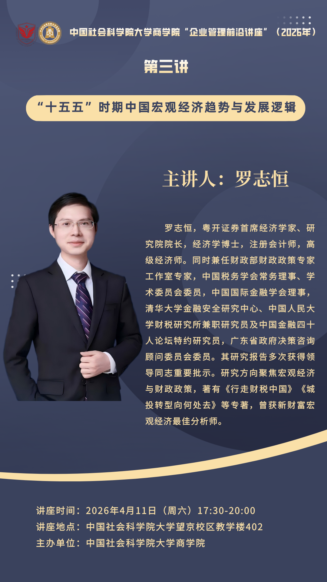 讲座预告 | 商学院“企业管理前沿讲座”第三讲——“十五五”时期中国宏观经济趋势与发展逻辑