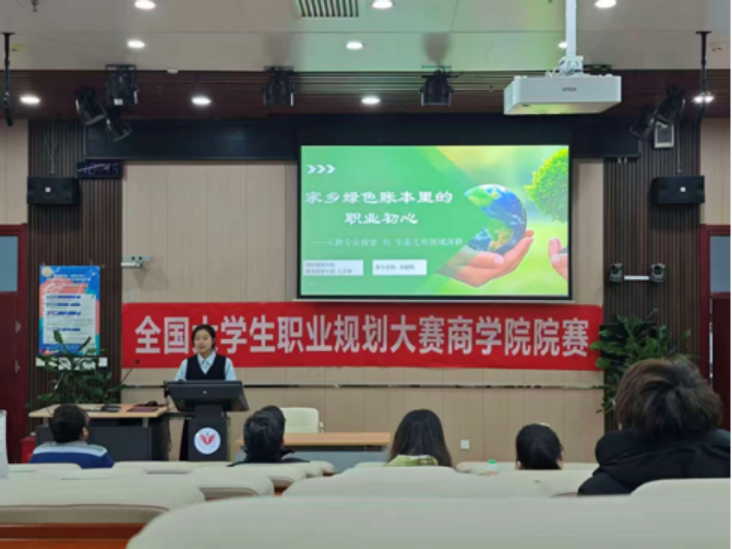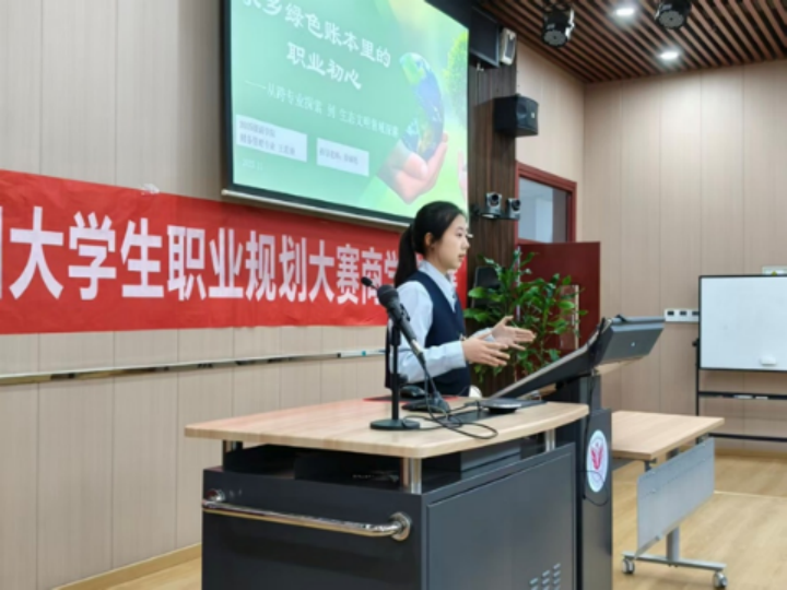 王若潼同学以《家乡绿色账本里的职业初心》为主题,将财务专业与“生态文明”跨界结合,探索绿色金融、环境会计等新兴领域的职业可能性,既体现专业深度,也彰显了商科学生的社会责任感。