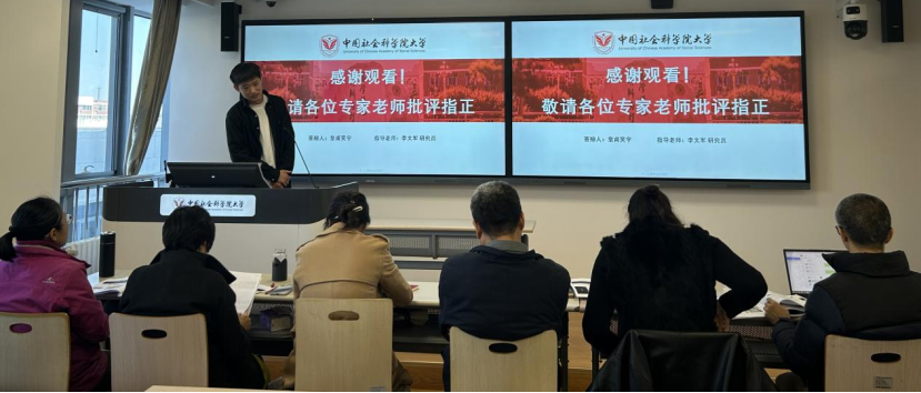 2025年10月21日,中国社会科学院大学商学院2025年度“研创计划”项目中期学术报告会在良乡校区北综合楼321教室举行。本次报告会邀请了学院执行院长张菀洺、党委书记何辉,副院长李石强,专职教师韩莉、蒋楠以及党委副书记贾潇6位老师组成现场评审小组,对7个研创项目进行了细致深入的点评。会议由赵颖老师主持。