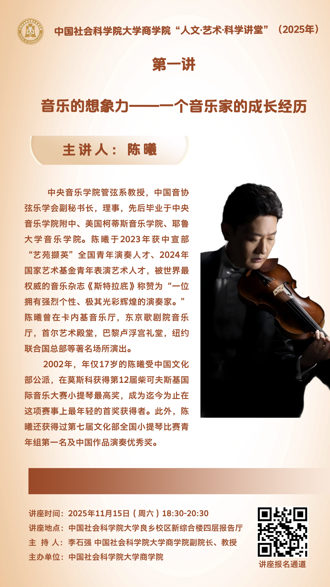讲座预告 | 商学院“人文·艺术·科学讲堂”第一讲:音乐的想象力——一个音乐家的成长经历